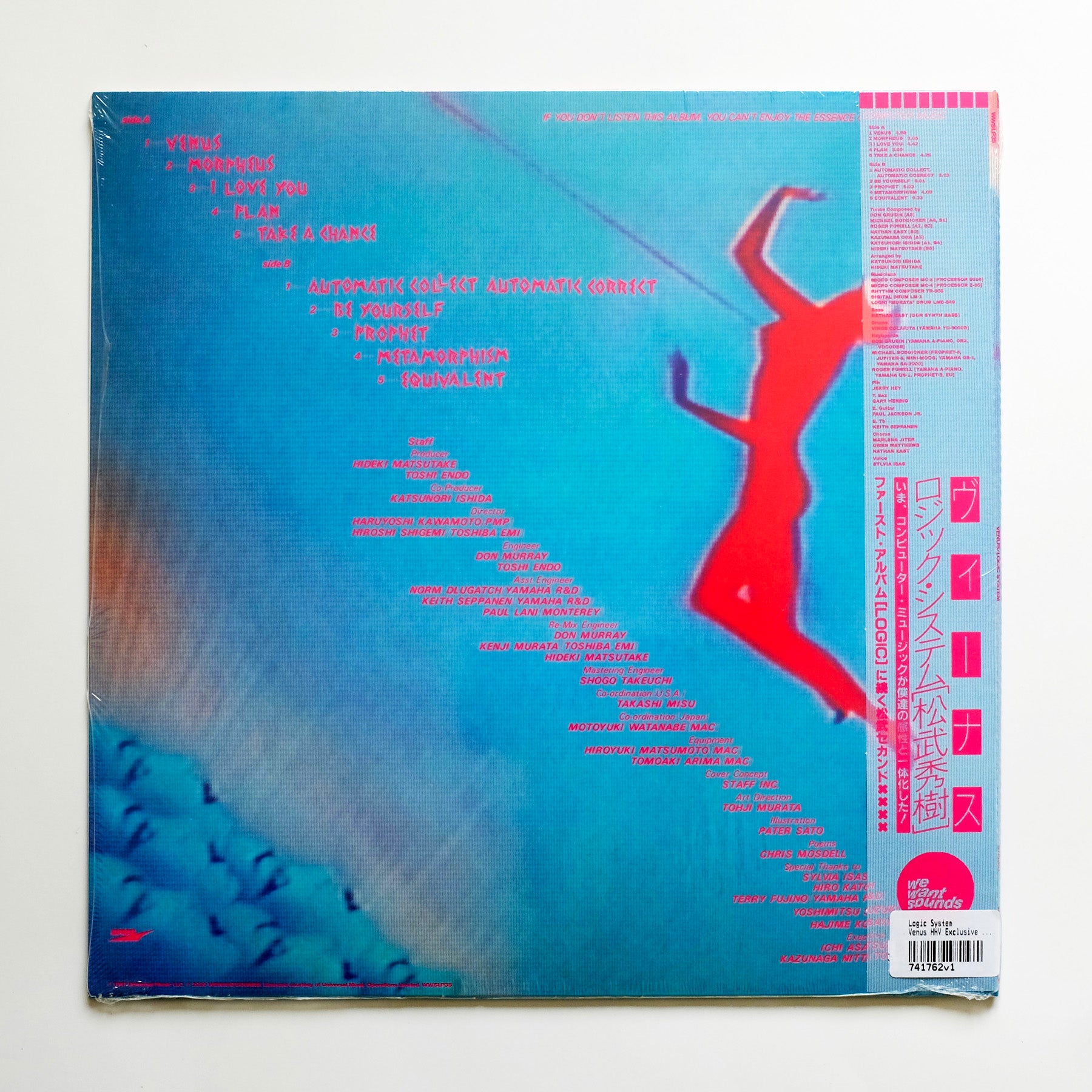 His name may not be instantly familiar, but Hideki Matsutake has had a huge influence over Electronic music. Starting his career as the assistant of Japanese Electronic Music master Isao Tomita in the early 70s, he went on to work with Ryuichi Sakamoto and then Yellow Magic Orchestra as their keyboard programmer and unofficial fourth member. In 1981 he started his own Logic System project recording "Venus" that year in Los Angeles with Don Grusin, Nathan East and Michael Boddicker, brilliantly mixing Synth Funk, Ambient and Boogie with a touch of Fusion Jazz predating Vaporwave by a mere 30 years. Wewantsounds is delighted to reissue this visionary album, which comes remastered from the original tapes and features Pater Sato stunning artwork including the rare beautiful 8-page insert with an exclusive interview of Hideki Matsutake by Hashim Kotaro Bharoocha. The early 80s were prolific for Hideki Matsutake. As the go-to keyboard programmer for the tokyo music scene, he worked on Akiko Yano's "Gohan Ga Dekitayo", YMO's "BGM", Ryuichi Sakamoto's "B-2 Unit", Mkwaju Ensemble's "Mkwaju" and found time to record two Logic System albums in 1981. While the first album, "Logic" had a harder techno feel, the second one "Venus" was different affair. Recorded in Los Angeles at the new state of the art Yamaha Studio, it was loosely themed on the Greek goddess Venus and had a funkier more organic sound. For the album Matsutake had asked a handful of American musicians to provide songs he would then add his synth magic touch to. Michael Boddicker, Don Grusin, Nathan East and Roger Powell duly complied and also played on the album.